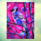 Oiseau de Jay Bleu sur branche d'arbre Art Abstrait rose