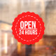 Autocollant Pour Fenêtre Ouverture 24 heures l Cercle rouge Heure d'ouvertu