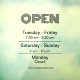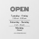 Autocollant Pour Fenêtre Ouverture des heures d'ouverture Script noir trans