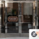 Un cadre décoratif met en valeur votre nom ou le nom de votre entreprise dans un style calligraphique sur cette adhésive personnalisée pour fenêtre. Idéal pour les boutiques, les boulangeries, les magasins de détail, les boutiques éphémères et plus encore. Art et conception © 1201AM Design Studio
