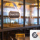 Un cadre décoratif met en valeur votre nom ou le nom de votre entreprise dans un style calligraphique sur cette adhésive personnalisée pour fenêtre. Idéal pour les boutiques, les boulangeries, les magasins de détail, les magasins éphémères et plus encore. Art et design © 1201AM Design Studio