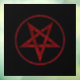 Pentagramme rouge, inversé, texturé en cercle, sur arrière - plan noir. Symbole occulte 666