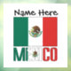 Le Drapeau mexicain vert, blanc et rouge est bien représenté sur cette fenêtre qui s'accroche. Sous le drapeau se trouve le mot MEXICO dans les couleurs du drapeau. Ci-dessus est un espace à personnaliser avec votre nom, un nom de famille ou, customiser avec un autre nom pour un cadeau.