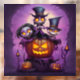 Petits monstres païens mignons de sorcier violet art d'Halloween.