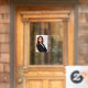 Autocollant de fenêtre d'entreprise moderne avec photo, informations de contact et code QR. Parfait pour les agents immobiliers, les salons, les boutiques et les bureaux. Facile à personnaliser avec votre propre marque pour créer un présentoir de vitrine professionnel et accueillant.