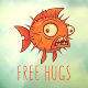 Illustration vectorielle d'un poisson-lopin ou d'un poisson-lopin wacky porcupine avec texte Free Hugs. Mots clés : poisson-brouillard, poisson-globe, poisson, plongeur, mer, océan, vie marine, vie marine, vie marine, porc-épic, épine, épine, pointue, pointue, pointillée, souffler, poisson-globe, animal, libre, câlin