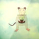 Ce magnifique accrochage de fenêtre en forme de montre une image graphique d'un rat chic siamois mignon avec un corps couleur crème, pieds et pattes roses, oreilles brunes, nez et queue et petits yeux rouges. Le petit rat sucré tient dans ses pattes un délicieux gâteau d'anniversaire. Le gâteau est un gâteau au chocolat surmonté d'un glaçage jaune pâle et rempli de confiture rouge. Neuf bougies surplombent le gâteau.