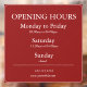 Make your business hours clear and stylish with this customizable Window Cling! Perfect for storefront doors and windows, this reusable cling displays your opening hours with a clean, professional design that catches the eye. Easy to apply and remove without residue — ideal for shops, cafes, salons, and offices.