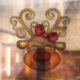 Une belle illustration du visage d'un renne dans les tons faux or et parties scintillant rouge. Elle porte un arc rouge dans ses cornes tourbillonnant et elle sourit avec attention. Ce design graphique est idéal pour n'importe quelle vitrine de magasin car il permet aux clients de toujours voir vos produits sans que le design obstrue trop votre vitrine et apporte l'esprit de la maison de Noël.