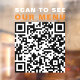 Panneau de fermeture de fenêtre moderne pour votre restaurant ou café avec votre code QR pour les clients à scanner pour votre menu sans contact. "Scan To See" est en caractères blancs gras et "Our Menu" en caractères oranges gras (contactez-nous si vous souhaitez changer les couleurs) et vous pouvez personnaliser le texte.