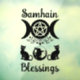 Samhain Celtic Pagan Halloween Salutation et la fenêtre de bénédiction accroché avec triple lune, pentacle, chats noirs et une sorcière