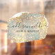 Autocollant de fenêtre Script de signature holographique pailletté de glamour moderne. Ce design présente une police de style script de signature élégante sur un fond de scintillement iridescent moderne magnifique. Parfait pour un salon de beauté, un coiffeur, un artiste maquilleur ou un cosmétologue.
