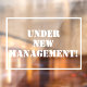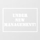 Ce graphique de cling de fenêtre "Sous la nouvelle gestion" est assez audacieux pour annoncer votre changement de propriétaire d'entreprise. Reprise d'entreprise ou avis de nouveaux propriétaires. Blanc sur arrière - plan clair.