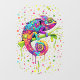 Chameleon Peinture Taches Aquarelle Style étrange art surréel. Image originale du logo vectoriel Copyright BluedarkArt.