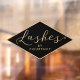 Le texte graphique en faux or écrit "Lashes" tandis que votre nom est associé en dessous pour un logo instantané sur ce sticker pour fenêtre personnalisé. Art et design © 1201AM Design Studio | www.1201am.com