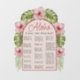 Un tableau de sièges alphabétique tropical floral, approprié pour un mariage hawaïen / luau. Le texte se trouve à l'intérieur d'une arche rose aux bordures rouges bordeaux. Autour de l'arc, fleurs tropicales et feuilles - monstère, palmier feuille et hibiscus rose - peints en aquarelle. Le titre "Aloha" est écrit en écriture manuscrite, dans un rouge bordeaux semblable en couleur avec le centre des fleurs d'hibiscus, le reste du texte est noir (tous les casquettes). Les feuilles tropicaux et la fleur sont de l'aquarelle, peinte par laomao_art de Pixabay, libre pour un usage commercial.