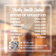 Nous vous présentons notre adhésif pour vitrine inspiré des designs rétro, qui allie parfaitement la typographie nostalgique à la fonctionnalité contemporaine. Cet adhésif polyvalent non seulement affiche le nom de votre entreprise, les heures d'ouverture et les coordonnées dans une bordure triple nette, mais intègre également une typographie rétro charmante pour un style vintage.