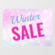 Indiquez à vos clients qu'il s'agit d'une "Vente d'hiver" avec un texte fuchsia et bleu sur un fond coloré avec des flocons de neige. Ou, changez pour votre propre message.