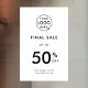Un simple modèle d'autocollant de fenêtre en vinyle blanc personnalisé pour les entreprises de vente finale dans un style moderne minimaliste qui peut être facilement mis à jour avec le logo de votre entreprise, le titre, la remise de vente et le slogan ou les informations de l'entreprise. La façon parfaite de promouvoir et d'annoncer votre événement commercial de petite entreprise ! #entreprise #vente