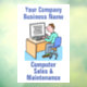 Un homme travaille sur un ordinateur. Graphiques de fenêtre pour une société d'ordinateurs. Personnalisez avec votre propre nom d'entreprise et description