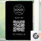 Un modèle simple et personnalisé d'autocollant vinyle noir pour fenêtre d'entreprise dans un style minimaliste moderne qui peut être facilement mis à jour avec votre logo d'entreprise, code QR et texte personnalisé.