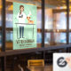 Autocollant Pour Fenêtre Vétérinaire Femme & Animaux Sur Vert & Texte