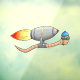 Le ver de fusée Speedy sur un cling de fenêtre pour les enfants.