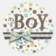 Des points doux et amusants avec motif rayé et des pacificateurs assortis pour autocollant baby shower.