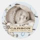 Cheval à bascule doux, bottes de cowboy, et tirage en fer à cheval avec corde 3D et autocollant étiquette de nom.