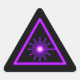 Autocollant noir triangulaire avec un symbole pourpre d'alerte laser.
