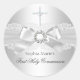 Autocollant Première Sainte Communion. Élégant arc de diamant argenté et jolie dentelle blanche. Remarque : toutes les images sont plates, elles n'ont pas de vrais rubans ou bijoux !