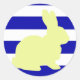 Autocollant silhouette de lapin jaune élégant et mignon / Favor de mariage sur fond rayé bleu et blanc / Autocollant à ajouter à votre collection d'accessoires. Une idée de cadeau cool / cadeau pour tous ceux qui aiment les objets personnalisés sur mesure, les vibrations positives, le plaisir, la joie, etc. Mots-clés : fête d'anniversaire, animal de compagnie, animal, Pâques, rose, corail, turquoise, vert etc.