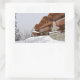 Autocollant rectangulaire de photo d'un grand chalet dans la neige dans la station de sports d'hiver Espace San Bernardo à la frontière entre l'Italie et la France en hiver.