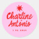 Autocollant rectangulaire Rétro Mariage écriture manuscrite rayé rose