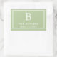 Ces autocollants rectangulaires personnalisés vert sauge sont parfaits pour un mariage, une fête de fiançailles, une douche de mariée ou des faveurs de dîner de répétition, ou comme détail supplémentaire à tout article. Le design présente la palette de couleurs vert sauge tendance avec des polices modernes et simples. Personnalisez-les avec votre initiale, nom et date d'événement pour les rendre uniques !