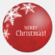 Décorez vos cadeaux avec cet autocollant personnalisable à bille de Noël avec des flocons de neige blancs sur les salutations rouges et les fêtes. Vous pouvez le personnaliser avec votre propre texte personnalisé. Des produits en papier, des timbres et des cadeaux de Noël sont également disponibles.
