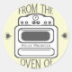Un autocollant mignon mais fonctionnel avec une cuisinière rétro en blanc surligné de gris sur un arrière - plan blanc cassé. Le texte gris ci-dessus et ci-dessous dit "Du four de". Personnalisez avec votre nom sur la cuisinière. Coeurs gris de chaque côté.