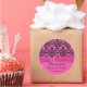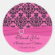 Autocollant rond 3" rose et noir Damask