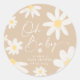 Cet autocollant rond fait partie de la collection Floral Daisy baby shower, qui se caractérise par un style rétro avec des fleurs de marguerite aquarelle et des couleurs neutres du désert qui convient aux garçons et aux filles, ou baby shower neutre pour le genre. Avec d'innombrables options de personnalisation, ce modèle est facilement personnalisable à tous les événements et facile à adapter à vos couleurs.