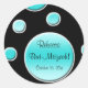 Autocollant rond Aqua et Black Polka Dot 1,5 po