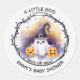 Célébrez votre journée spéciale avec cet autocollant de baby shower A Little Boo. Avec un doux fantôme avec citrouilles et un design à l'aquarelle, il est parfait pour les cadeaux de baby shower, les invitations et les décorations saisonnières.