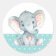 Autocollant Rond Classique Aqua pour Baby Shower Éléphant