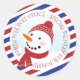 Emballez votre courrier ou votre cadeau de Noël avec un joli sceau rond qui présente les bordures d'une enveloppe de courrier aérien en bleu foncé et rouge. Il comporte une illustration d'un bonhomme de neige avec une écharpe confortable et un chapeau d'hiver. Le texte est entièrement personnalisable et se lit comme suit : POSTE DU PÔLE NORD - EXPÉDITION SPÉCIALE POUR ...