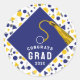 Étiquettes créatives de félicitations pour remise de diplôme, autocollants pour cadeaux ou sceaux pour enveloppes avec casquette bleue et glands dorés sur fond de confettis. Modifiez le texte pour ajouter le nom du diplômé et l'année de la promotion.