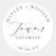 Ces autocollants de faveur de mariage présentent un design minimaliste et un titre en calligraphie. Personnalisez les autocollants avec vos noms et date, le titre en script n'est pas modifiable. Ces autocollants de faveur peuvent être utilisés pour les mariages, les douches de mariée, les douches de bébé, les anniversaires ou tout autre événement. Pour une personnalisation plus avancée de ce design, sélectionnez simplement le bouton "Personnaliser" ci-dessus.