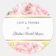 Ajoutez une touche d'élégance à votre douche de mariée ou à vos faveurs de mariage avec cet autocollant rond classique "Amour et Merci" à fleurs de rose rose romantique. Parfait pour exprimer votre gratitude de manière belle et réfléchie !