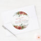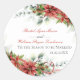 Voici l'autocollant parfait pour votre mariage de vacances. Il présente nos poinsettias rouges avec eucalyptus vert encadrant vos noms avec la ligne de tag "Tis the Season to be Married", puis votre date.