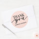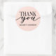 Un autocollant « merci » rose élégant et stylé de 3". Personnalisez-le avec votre nom. Idéal pour les mariages et les petites entreprises. Disponible dans une variété de couleurs. Conçu pour vous par Blackberry Boulevard.
