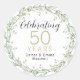 Autocollant d'anniversaire élégant avec une délicate couronne florale entourant les mots "Célébrer 50 ans" et vos noms. Mettez facilement à jour l'année et les noms, puis utilisez ces autocollants sur des cartes, des invitations, des cadeaux et plus encore !