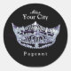 Une couronne de style Miss America se trouve au centre de cet autocollant rond montré en noir avec une photo d'une couronne de reine. Téléchargez votre propre image si vous voulez de vos titulaires de droits, des favoris. Excellent outil promotionnel ou alternative aux boutons pour simplement gifler votre chemise ou veste. Customisez le texte à votre nom, modifiez les couleurs du texte ou customisez plus loin. Bon pour la réservation de ferraille aussi. Grande taille. Customisez cet objet ou achetez tel quel.